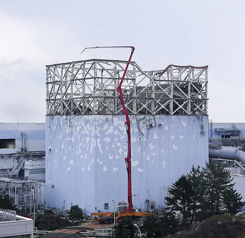 三一62米长臂泵车在福岛核电站进行注水作业