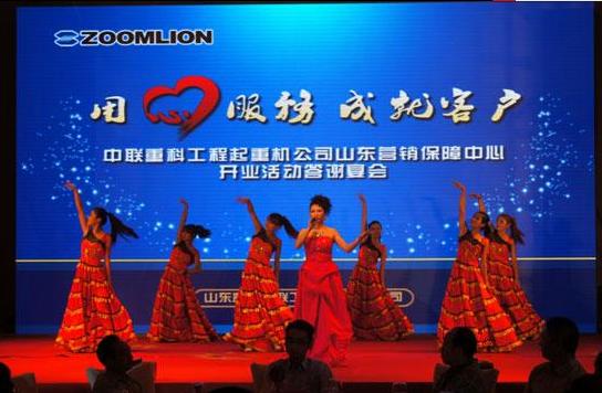 开业典礼之后,保障中心在喜来登酒店准备了丰盛的答谢宴以及精彩的文艺节目。中联重科工起分公司领导郑波先生做了致酒词,同时,济南市高新区纪工委副书记张传宏作了热情洋溢的致辞,他指出“山东营销保障中心的成立给高新区及周边的发展带来了活力,同时,下一步将一如既往的支持山东营销保障中心的工作”。答谢宴上的各个节目精彩纷呈,让人应接不暇,其中沙画表演更是给在场的嘉宾以最精彩的视觉盛宴,引起阵阵喝彩。