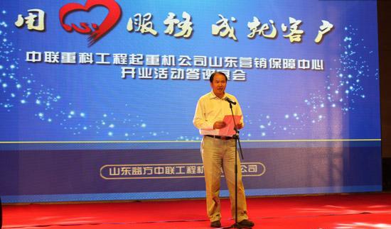 山东益方中联工程机械有限公司总经理刘旷先生致欢迎词。他首先感谢各位来宾多年来对中联重科山东营销保障中心的支持,并且强调“山东营销保障中心的成立标志着中联重科在山东市场迈出了坚实的一步。”在本次开业典礼上,刘旷总经理树立了未来企业的发展目标,并对未来3年的企业发展做了简单规划。他向客户承诺中联重科山东营销保障中心将以高效、专业的态度践行打造“服务第一品牌”的承诺。为此,中联重科山东营销保障中心将加快提高服务人员技能,加大服务硬件机软件设施的投入。他用精确的数字概述了企业的投资规划“力争3年内建立8个营销保障中心。”