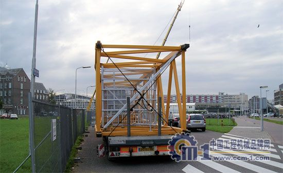 荷兰公司Vanderspek在欧洲运输利渤海尔630 EC-H20 Litronic塔式起重机部件。