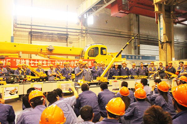 2013.5.18,是徐工起重机械事业部七十岁的生日。为了迎接“518” 70周年厂庆,这几天,起重机械事业部员工在休息的时候总是很忙,他们或是锯木板,或是焊支架,或是刷油漆……忙的不亦乐乎,他们在做的是一件大事——“DIY我心中最美起重机”,为企业送上一份特殊的贺礼。活动现场,12台各年代的精美起重机模型“昂首挺胸”,欢笑与赞美之声此起彼伏。