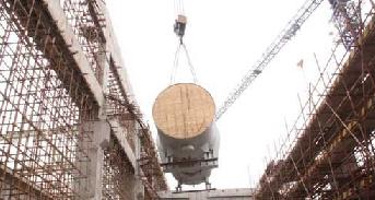 转载 2013-06-19 09:22 来源:中国起重机械网 6月15日上午9时30分,经过1天多的努力,随着3MX机组除氧器最后一段(Ⅰ段)的支座与吊装前预装滚轮的准确对位,除氧器吊装就位工作圆满完成。