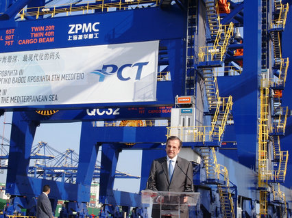 中远投资运营的比雷埃夫斯港码头所有港机设备均来自振华重工,为了支持中远将该码头打造成地中海区域吃水最深、设备最先进的码头、打造成欧洲商品进出口的大门,振华重工为该码头提供了目前欧洲集装箱港口中最先进的设备。此次开港采用的5台双起升岸桥设备与同类型岸桥相比,其外伸距大,工作效率高,5台岸桥同时装卸可达到24小时内4000至5000个装卸箱量,能装卸即将投入使用的世界最大3E级集装箱船舶。