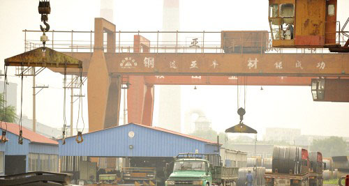 8台龙门吊车装卸钢材 辽宁亚丰实业集团成功跨越