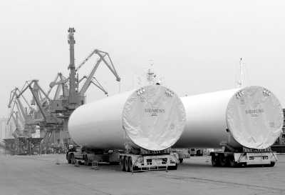 近日,一批风力发电塔架在江苏连云港港口码头等待装船出口海外。近日,巴菲特斥资百亿的爱荷华风电项目获得美国爱荷华州批准。今年稍早前,巴菲特旗下的中美能源宣布,计划投资19亿美元,以扩大其在爱荷华州的风力发电业务。该工程预计于2013年9月开始,并计划到2015年底前完成。该项目将拉动风电设备需求,有望带动中国风电设备出口。