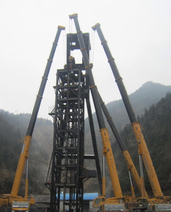根据井架吊装设计及工期要求,井架必须当天一次性吊装完工。而山区湿气大,早晚都是大雾弥漫,能见度不足30米,整个施工只能在中午短短两个小时内完成。徐工起重机充分经受了考验,无论是组装的便捷性、吊装的效率、起重性能还是稳定性、安全性等,都受到了客户和施工方的一致认可。