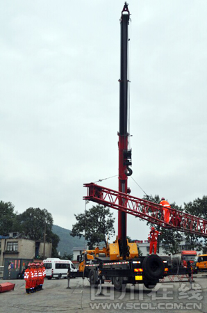 据悉,该180吨全地面起重机整个操作需配备1名起重机司机、1名板车司机、1名起重工、2名丝索工。它最大载重为180吨,主臂加副臂伸长共105米,能进行60米远距离起吊,能为抢险救援及重型材料起吊发挥积极的作用。