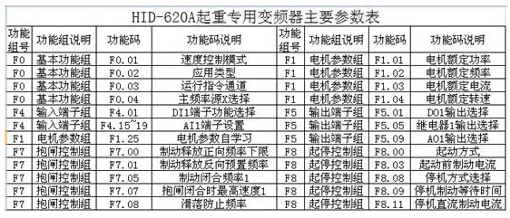 45t门式起重机进行变频调速常需考虑起重机启动转矩大、主钩上行或下滑时易溜钩、负载冲击频繁等情况。本项目选用的HID620系列起重专用变频器,采用最新高性能电机控制专用DSP,磁场定向电流闭环矢量控制,定子电流完全解耦,具有低频高力矩输出的特点,高速、准确、平稳、持久的完成起重控制任务,同时配合独特、可靠的抱闸时序控制,可完全避免溜沟的现象。