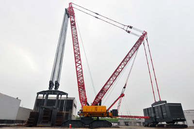 SCC36000A型3600吨履带起重机于采用了先进的极限状态设计法、数字化样机和Top Down等设计方法,申请发明专利30项。目前参与山东荣成石岛湾水压堆CAP1400核电站工程。这是国家核电、三一重工、浙江火电,这不同行业的三大顶尖级企业强强联合,可谓是吊装历史上最为壮观的饕餮盛宴。