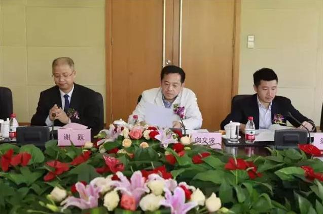 久隆保险董事长向文波(左二)和久隆财险筹备组组长谢跃(左一)