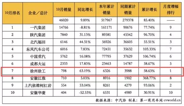 厉害了!徐工重卡十月杀入行业销量前七,增速行业第一!