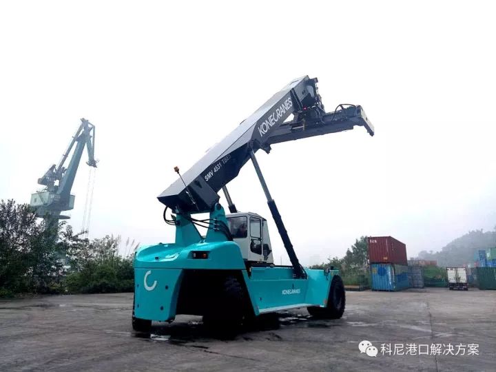 科尼正面吊选用耐久现代的起重吊具,起重能力可达45吨,在跨箱作业时科尼正面吊有较强的稳定性,既加强了安全性又提高了效率。科尼正面吊轴距为 6400mm, 整机稳定系数为 1.74, 这在所有品牌正面吊中是最高的。另外,科尼选用Parker原装进口变量柱塞泵,与齿轮泵相比,其优点为:节油和减少排放率降最高可达40%;增加执行时间并减少停机时间;减少零件的磨损(包括阀、泵、密封圈及油缸);噪音更低等等。