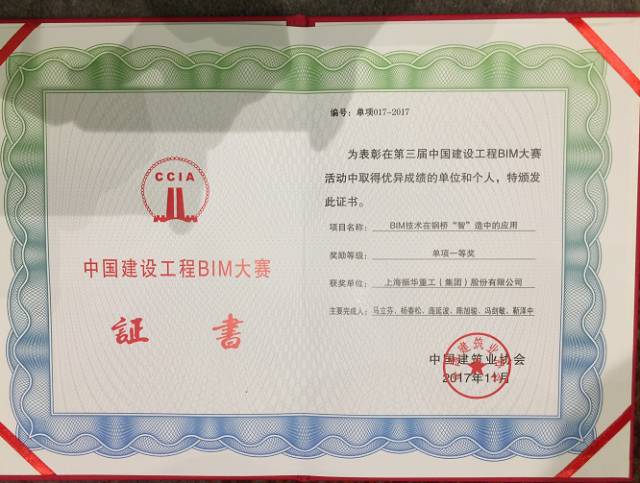 12月21日,中国建筑业协会在福建省厦门市召开了建设工程BIM技术成果推广应用经验交流会暨中国建设工程BIM大赛颁奖典礼,海工集团钢结构事业部副总经理马立芬代表振华重工参加,并领取奖状、证书。