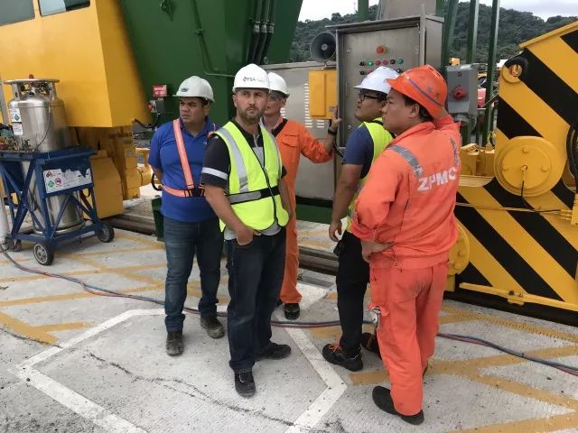 在该批岸桥交机过程中,码头用户对于岸桥整体质量和电气调试工作高度重视,分别从新加坡ABS请来了第三方质量工程师,从PSA土耳其码头调来了设备部经理对工程进度和质量进行全面把控。在施工过程中分别就提升工装质量检验、卷扬机吊耳探伤、高强度螺栓安装工艺等提出了要求。