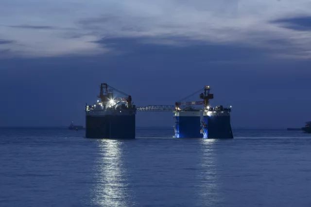 整个最大沉浮试验持续约3小时,半潜驳下潜至最大设计深度26米,并顺利起浮至初始状态。