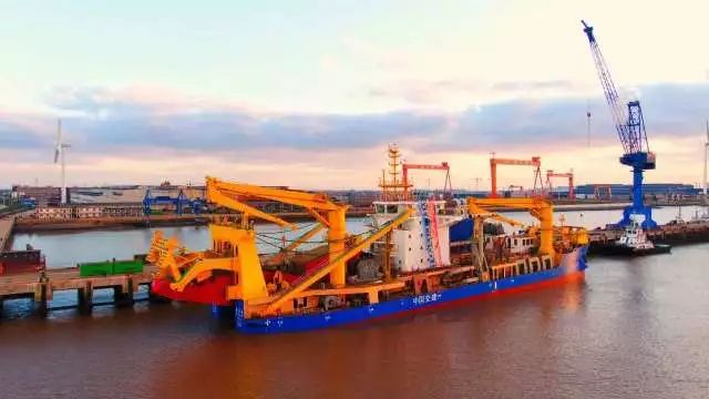 在振华重工的江苏启东基地,亚洲最大最先进的自航绞吸式挖泥船“天鲲号”静静地停靠在码头上。“天鲲号”是由中国自主设计研发的新一代国之重器,全船长140米,型宽27.8米,型深9米,最大挖深35米。