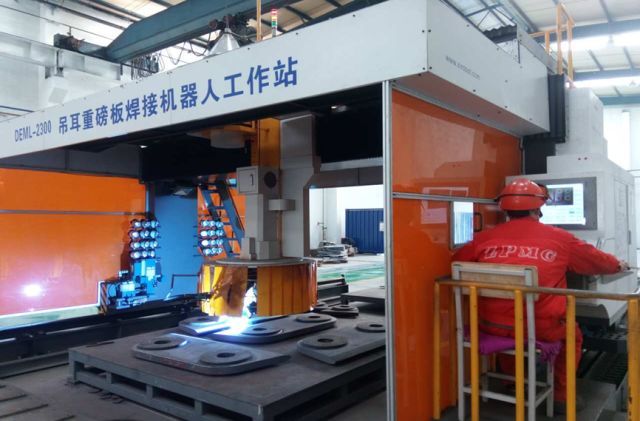 近日,ZPMC首个吊耳重磅板智能化焊接机器人在振华重工长兴分公司投入使用。该机器人工作站是主要针对岸桥产品小件的智能化焊接工作站。