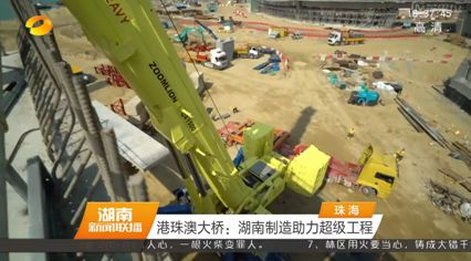 中联重科作为湖南制造的一张靓丽名片,从港珠澳大桥建设伊始,就有全地面起重机、拖泵、布料机、泵车、塔机等70多台高端设备,深度参与了人工岛桥面等多个项目的建设。