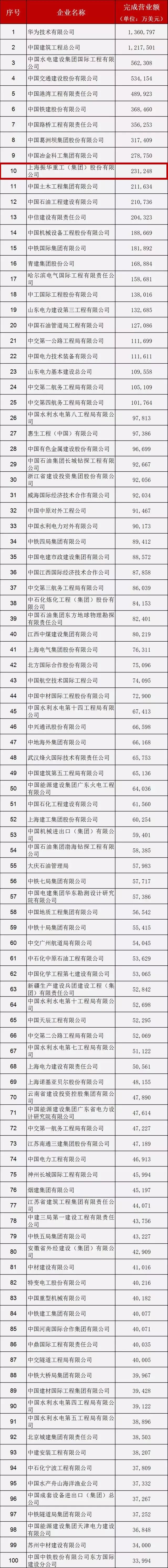 统计数据显示,2017年公司海外完成营业额23.12亿美元,位列第10;海外新签合同额18.65亿美元,位列第22,在入围的上海企业中排名前列。