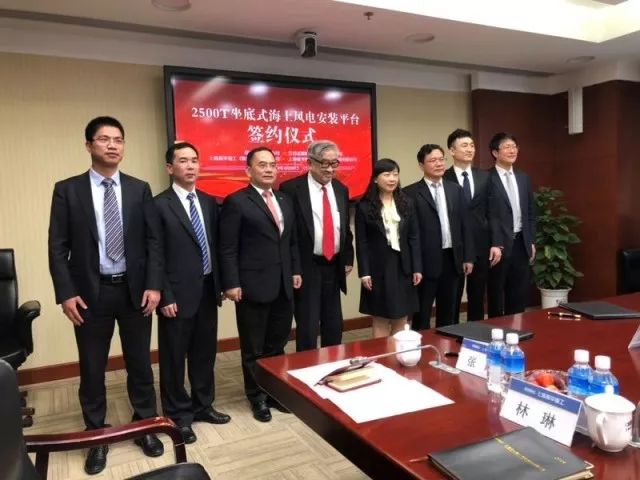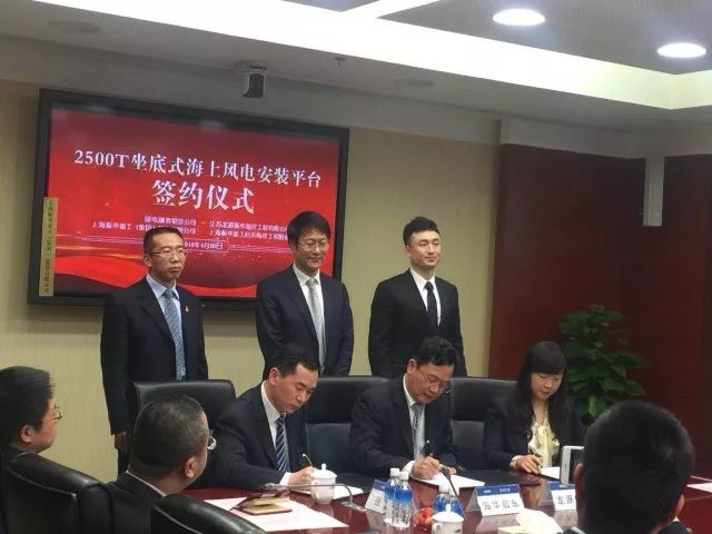 4月20日,启东海洋公司、龙源振华公司及国电融资租赁公司三方签订了一艘《2500T坐底式海上风电安装平台》建造合同。海工集团总经理助理、启东海洋公司总经理高峰,龙源振华公司总经理李泽,国电融资租赁公司董事长李阳作为三方代表进行签约。