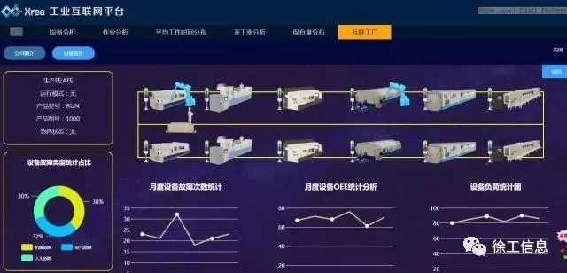 Xrea工业互联网平台,不仅连接了徐工的产品,还连接了徐工各主机厂生产现场的机床、机器人、AGV小车等设备。Xrea平台能够精准统计设备的开工率、能耗、健康情况、机床加工精度,能够对设备进行诊断、统计和分析。