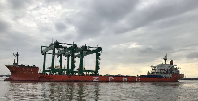 6月9日,“振华31”轮运载着两台自动化轨道吊抵达广州GCT码头。在该项目的卸船任务中,码头用户仅留给振华重工48小时的靠泊时间,在如此短的时间内,要将两台“庞然大物”从船上卸到岸上,再从码头前沿移到后场谈何容易。办好卸船手续后,留给卸船小组的时间仅剩33个小时,33小时内,“振华31”轮必须离泊。在紧迫的压力下,现场卸船小组根据潮汐情况决定6月10日下午及晚上各卸一台轨道吊。不料,卸船用的台车突然故障,使得卸船进度一拖再拖,卸船小组采取紧急措施,不断调整船舶吃水以满足卸船条件。经过各方配合终于在6月10日的16点和24点成功卸下两台轨道吊。