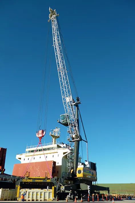 这种新型起重机采用集装箱装卸,配备双吊式吊具,是Qube公司港口启用的第八台利勃海尔移动式港口起重机。其它的几台吊机各分布在达尔文、班伯里、黑德兰港、杰拉尔顿和弗里曼特尔。