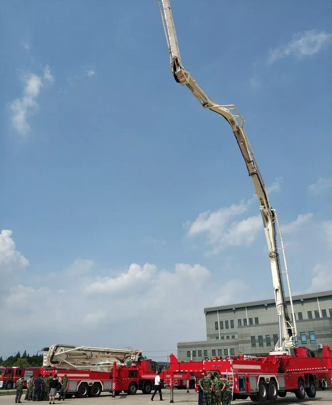 与常规举高消防车相比,此次交付的三一高喷消防车,支腿可任意跨距展开,不受场地限制;自带48米全折叠臂架,操作者可任意调整臂架角度,末端出水口最大限度接近火源,真正具备了“指哪打哪”的功效;水泡联动,边移动边持续工作,灭火效率极高;臂架末端安装摄像装置,及时反馈前方火灾信息,现场消防人员可据此作出正确判断和决策,为高效救援提供了帮助。特别适用于大型仓库、油罐、商场、场馆等大体积建筑的消防救援,填补了行业空白。