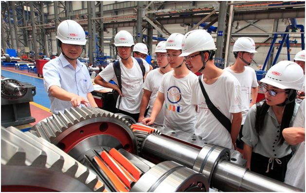 随后,师生一行前往南通传动公司。南通传动公司副总经理秦彬彬出席接待,并带领师生参观基地生产车间。秦彬彬从基地产品、生产设备、生产人员、制造能力等方面,简要介绍了各个生产车间的基本情况,充分展现了其自动化、智能化生产的特点。参观结束后,师生共同观看了南通传动公司宣传片。