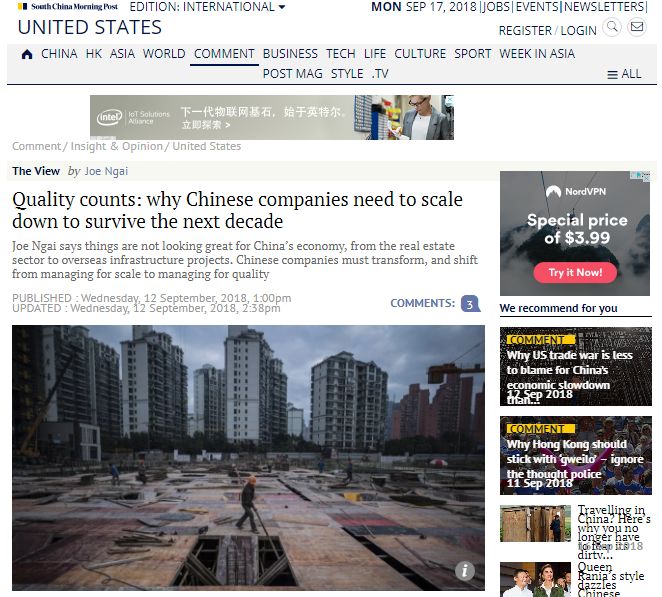 【徐工荐读】港媒文章:中国企业须向质量管理转型