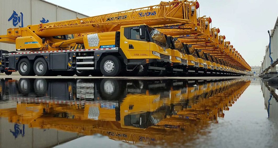 徐工产品已出口到全球182个国家和地区,图为“行业第一大单”徐工出口产品发车仪式