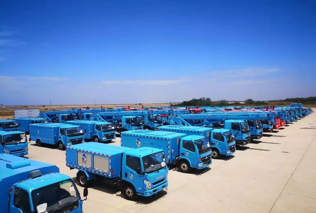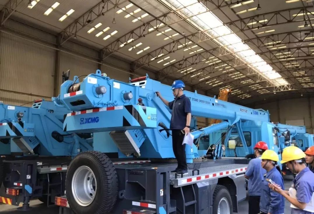 原来,这批设备是专门针对当地客户要求进行的“私人订制”产品。据了解,此次出口的徐工设备,除了红色的消防车设备外,徐工汽车吊、清扫车、高空作业车皆按照客户要求采用“孔雀蓝”样式进行订制。