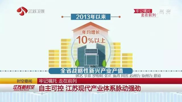 2013年以来,全省战略性新兴产业产值年均增长10%以上,高新技术产业产值占比从37%提高43.8%。2018年,全省地区生产总值9.26万亿,同比增长6.7%,以全国1.1%的国土、5.8%的人口,生产出10%的经济总量。以徐工为代表的徐州工程机械产业,已经列入江苏省综合影响力达到世界一流水平的四大产业集群之一,用走在前列的过硬成果,奋力书写经济高质量发展的答卷。