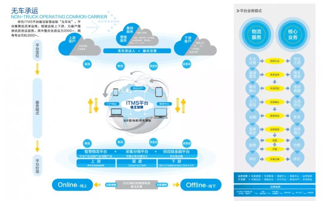 作为徐工集团重点打造的物流核心能力平台,徐工智联通过平台化运营集成优质运力2000余辆、专业司机3000余人。并在此基础上不断深化智慧物流信息平台建设,实现货源与车源的集聚效应,深度挖掘物流金融及后市场需求,通过创新集采分销模式,在让利承运商的同时实现利润,达成一个良性的、可持续发展的物流生态。