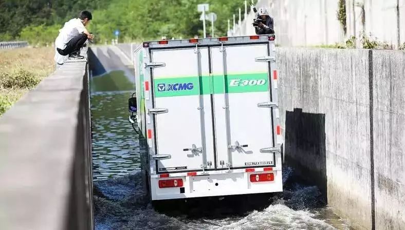 E300纯电动厢式物流车参加涉水比赛