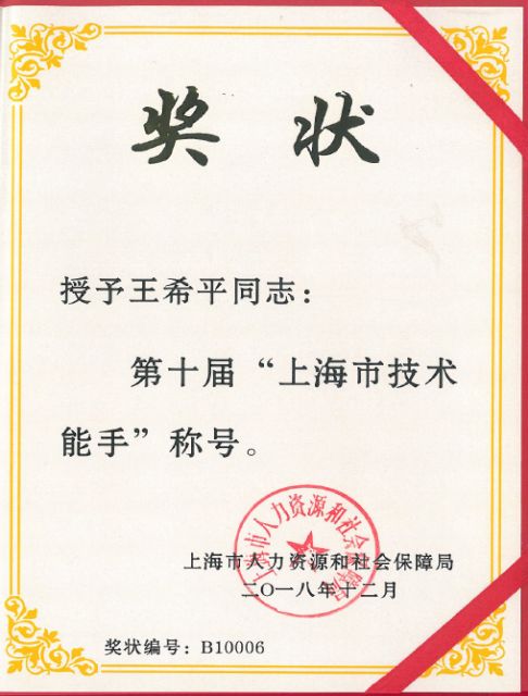高级技师王希平从事装配钳工20年,负责技能大师工作室日常工作,先后独立负责完成多台岸桥和轨道吊项目安装调试工作,在技术创新和改革方面获得多方认可,被大家称为港机装配调试的“行业专家”,连续多年被中交集团技能考核中心聘为“国家职业技能鉴定考评员”。