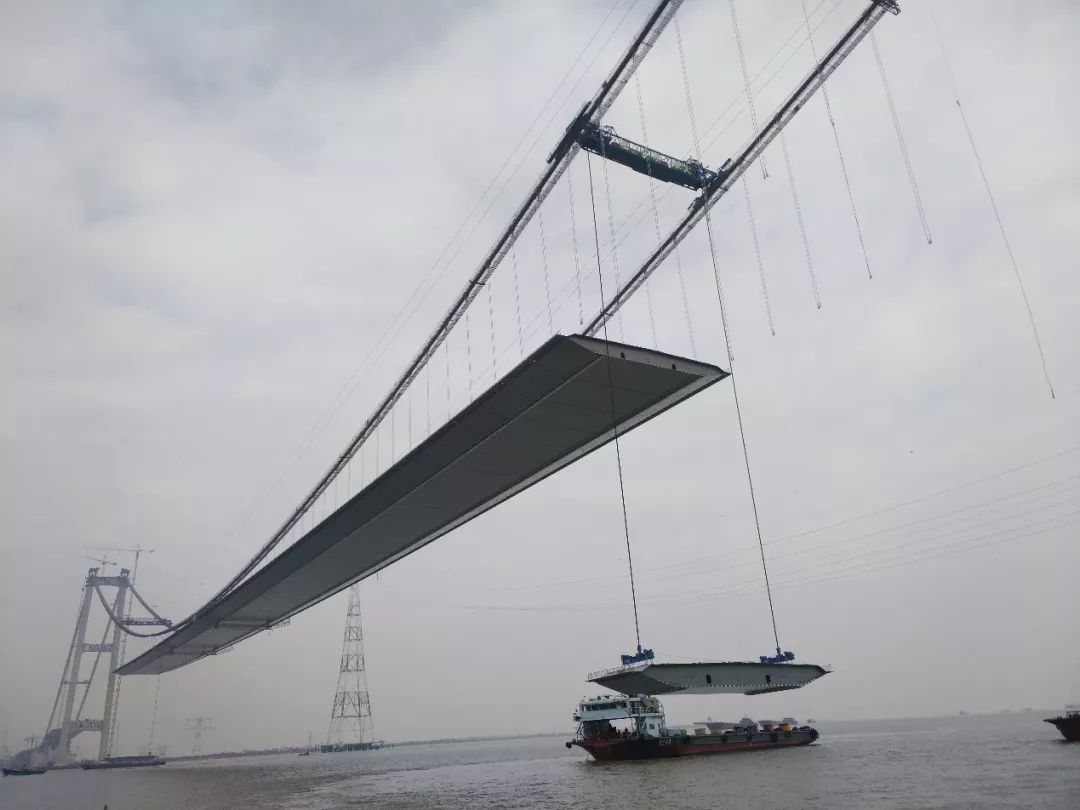 振华重工参与了虎门二桥的建设,承建了坭洲水道桥66节钢箱梁共计18550吨钢结构的制作、涂装、吊装、环缝连接以及检查车、防护栏等附属工程。