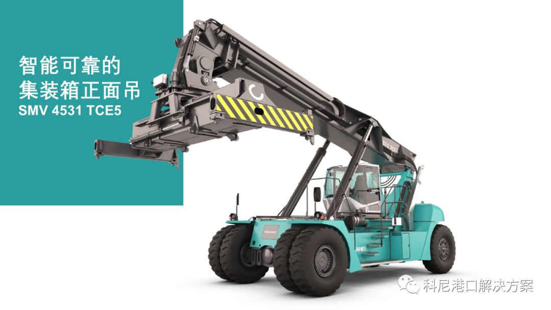 这款正面吊是2018年底向中国市场推出的TCE系列,该产品不仅延续了老一代产品的坚实耐用和出色性能,更是注入了新的智能力量-智能电子系统EMC master 和远程监控系统TRUCONNECT®。出色的稳定性与智能力量强强联合,突破了用户在安全、运营、节能环境等多个行业问题,让用户获得更加安全而高效的运营,获大的投资回报。