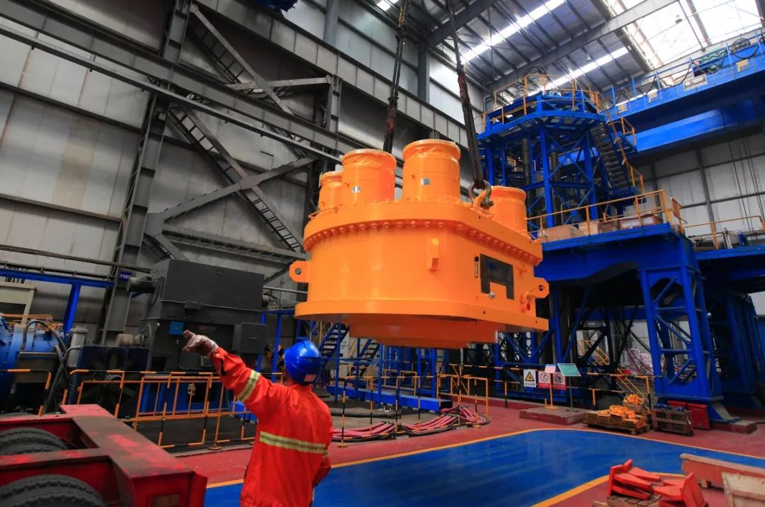 该驱动部是硬岩海底风电施工的利器,额定驱动功率高达1680千瓦,可以驱动刀盘一次性挖掘最大直径达13米的岩洞。具备针对福建沿海等硬岩海底施工的能力,亦可应用在城市、山区地下防空系统施工等场所。驱动部兼顾硬岩加压和软土减压两种工况需求,可“顶住”岩石铣削,亦可以“拎起”自身和刀盘在“豆腐”上钻孔。具备0-5-9三种转速工况,可在每分钟5转额定转速下、每分钟9转高速下运行,还可实现刀盘在每分钟0.1转转速下脱困。此外,该驱动部额定扭矩2800千牛米,脱困扭矩达3700千牛米,也都是迄今为止国内最大扭矩产品。
