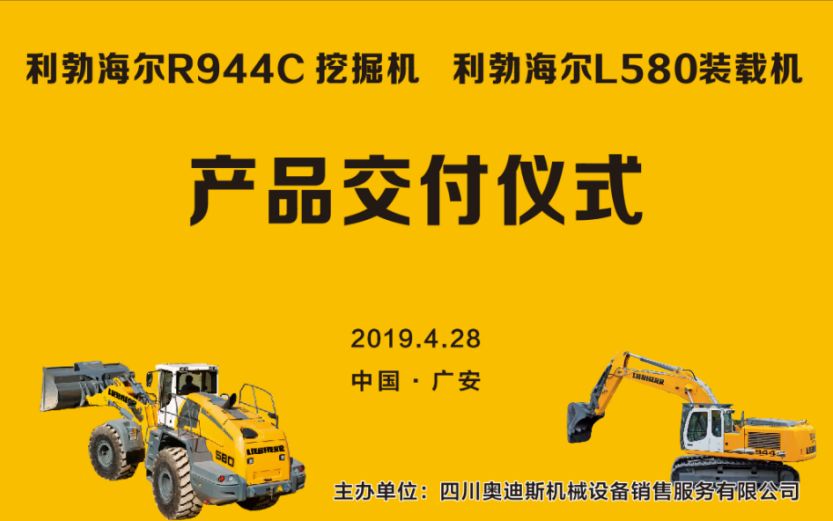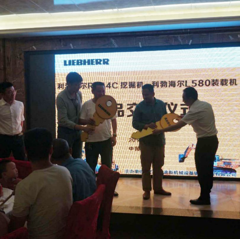 2019年4月28日,利勃海尔产品交付仪式在风景秀丽的广安邻水隆重举行。来自工程机械行业的各位朋友出席的交机仪式并现场参观了利勃海尔R 944C挖掘机和L 580装载机。