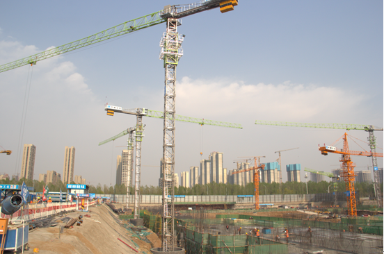 ▲中联重科W新品塔机在某工地施工