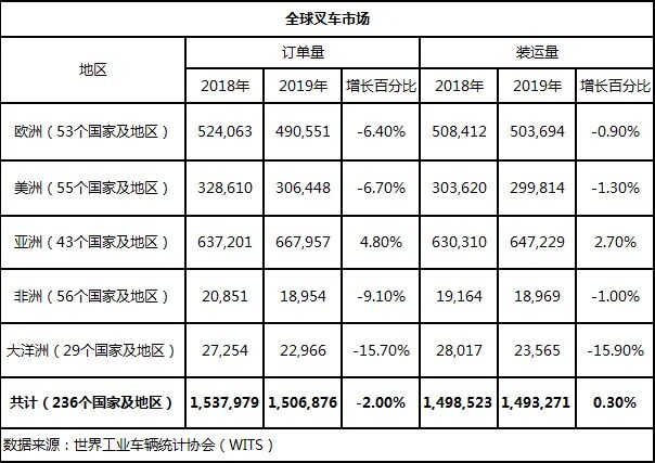 全球工业叉车统计(WITS)组织跟踪有关叉车销售的季度和月度统计,其报告由北美,巴西,日本,韩国,欧洲和中国的六个协会组织编制。