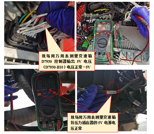 根据以上变速箱压力感应器的电气图纸现场对压力感应器的5V电源进行检查,未发现异常。