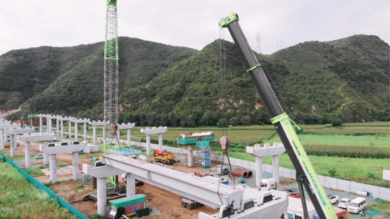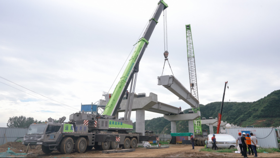 该路段因周边有群山环绕,导致施工施展空间较小,再加上桥梁桥体的重量需求,只能使用满足最大起重重量,且能自如吊起桥体的便捷起重机。目前国内能适用的正是中联最适合城建、高层建筑施工,特别是适合桥梁吊装的6桥底盘平台中吊重型产品 — ZAT4000V全地面起重机。