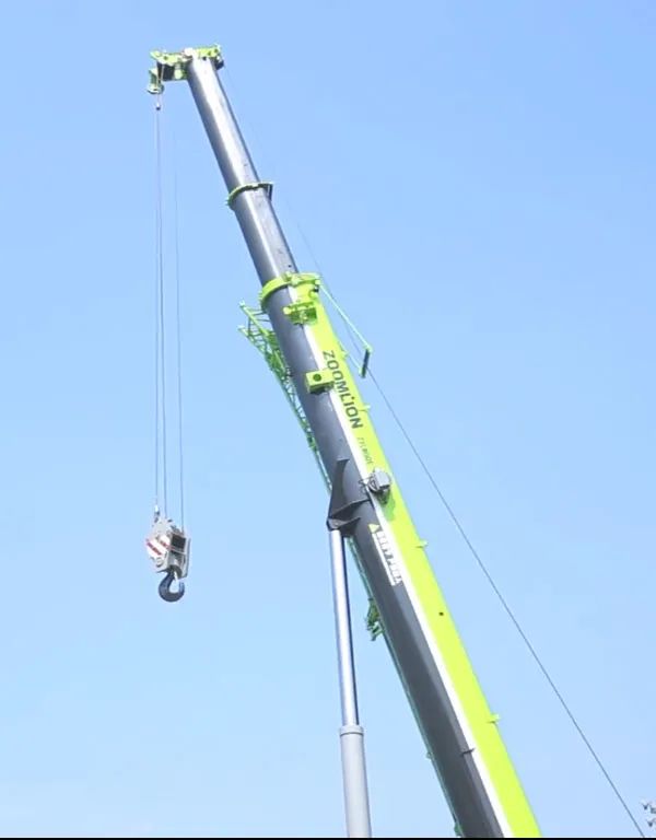 要干吊高的活,吊臂自然要长。中联重科ZTC800E653的主臂长12.5m,全伸臂58.5m,最大吊载9.8t。产品配置可随车行驶的9.5m加长臂,能搭配17.5m副臂使用,最大作业起升高度可达86m,最大吊载2t,起重性能超过行业主流水平。
