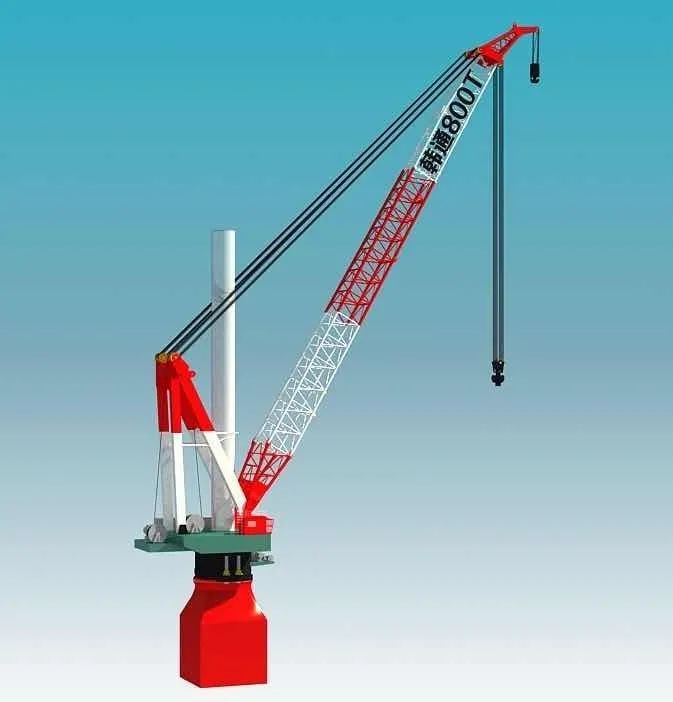 绕桩式起重机是安装在海上自升式作业平台的特殊起重机,其中心可穿过平台桩腿并实现360度回转。与一般基座式起重机相比,绕桩式起重机具有设计紧凑、自重轻、占用甲板面积小、工作高效等优势。