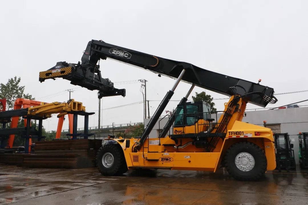 与常规正面吊不同,此台正面吊是完全非标定制化的,堆垛能力从五层增至六层,驾驶室具备防砸的安全认证,增加了副座椅,配置全新的变速箱和整套ORLACO影像系统,也按照用户要求提供了独具特色的色彩涂装。从前期的市场开拓、订单签订,至生产阶段的用户对接与沟通,ZPMC的服务无疑是全方位的,虽然很多特殊配制都需联系新的供应商进行采购,但依然做到如期下线。ZPMC不仅能做好标准产品,还能满足客户定制化的需求。