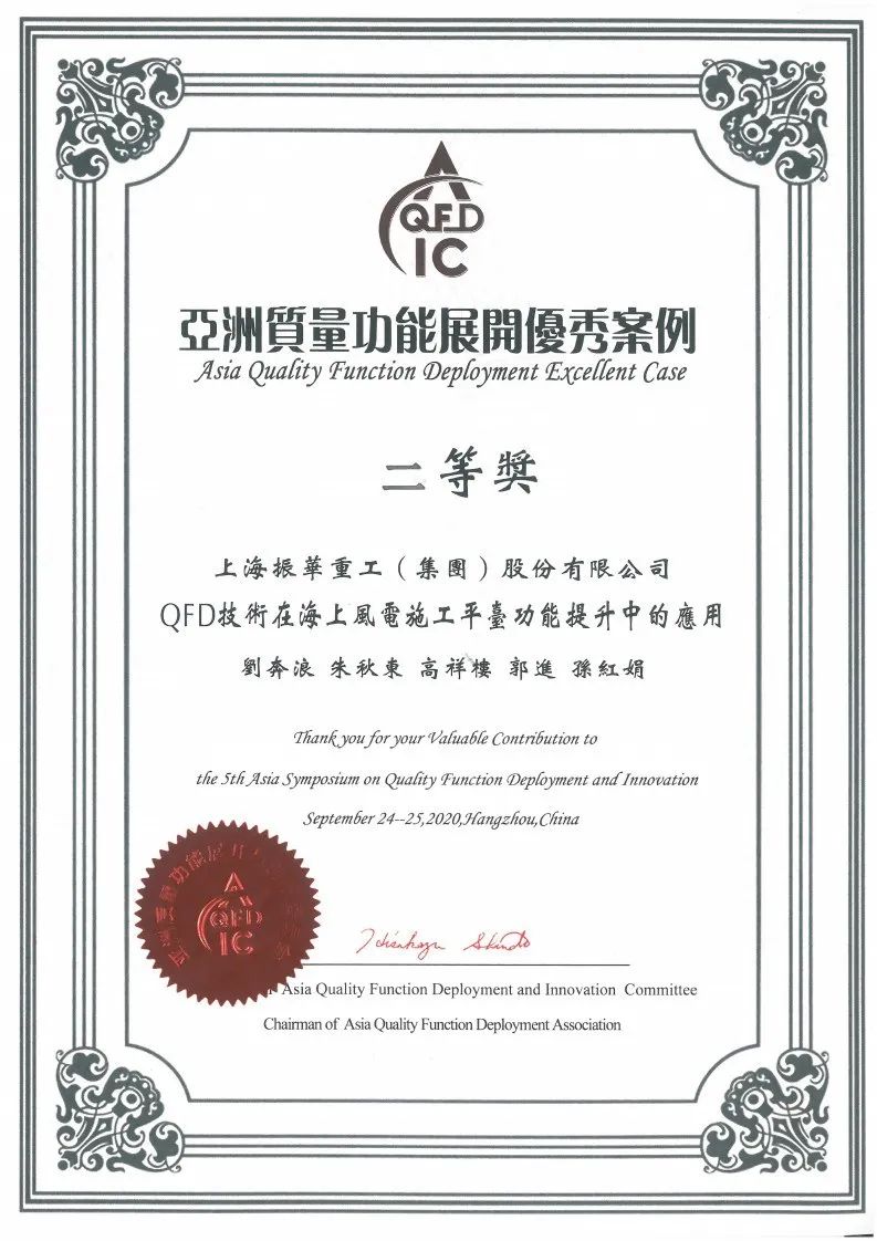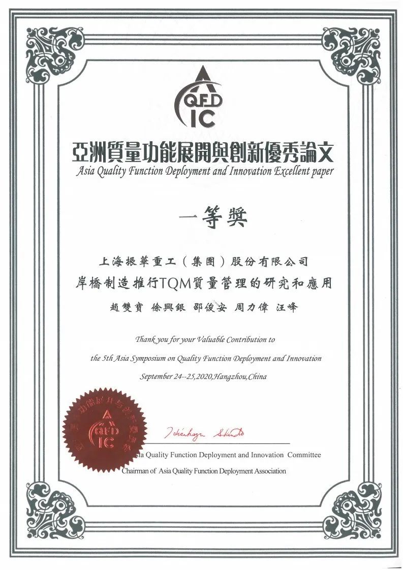 转载 2020-10-14 09:50 上海振华 来源:上海振华近日,振华重工受邀参加第五届亚洲质量功能展开与创新研讨会。会上,长兴分公司申报的“岸桥制造推行TQM质量管理创新模式的研究和应用”获得优秀论文一等奖;南通振华重装申报的“QFD技术在海上风电施工平台功能提升中的应用”获得优秀案例二等奖。