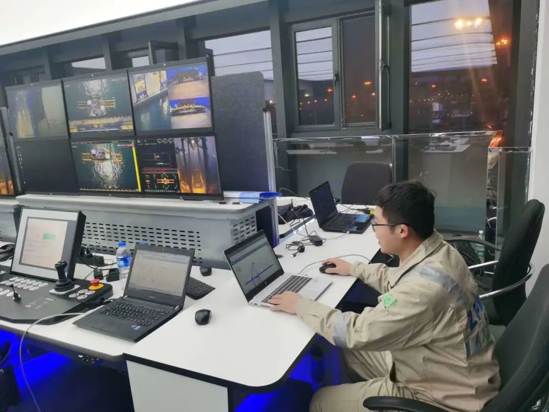 在该项目中,振华重工自主研发了集装箱作业任务集成管理系统(ETMS),首次对无人集卡、自动解锁站、岸桥远程自动化进行统一任务管理,实现设备系统高效联动。同时,通过防摇防扭、集卡引导等关键技术的研发,率先在全球应用新一代高精度云点图船舶扫描系统,实时进行船、货、车的位置信息交互,自动规划机械运行最优线路,并实现岸桥陆侧“一键着箱”,使岸桥作业效率达到国际领先水平,开辟了集装箱岸桥自动化跃升的新模式。