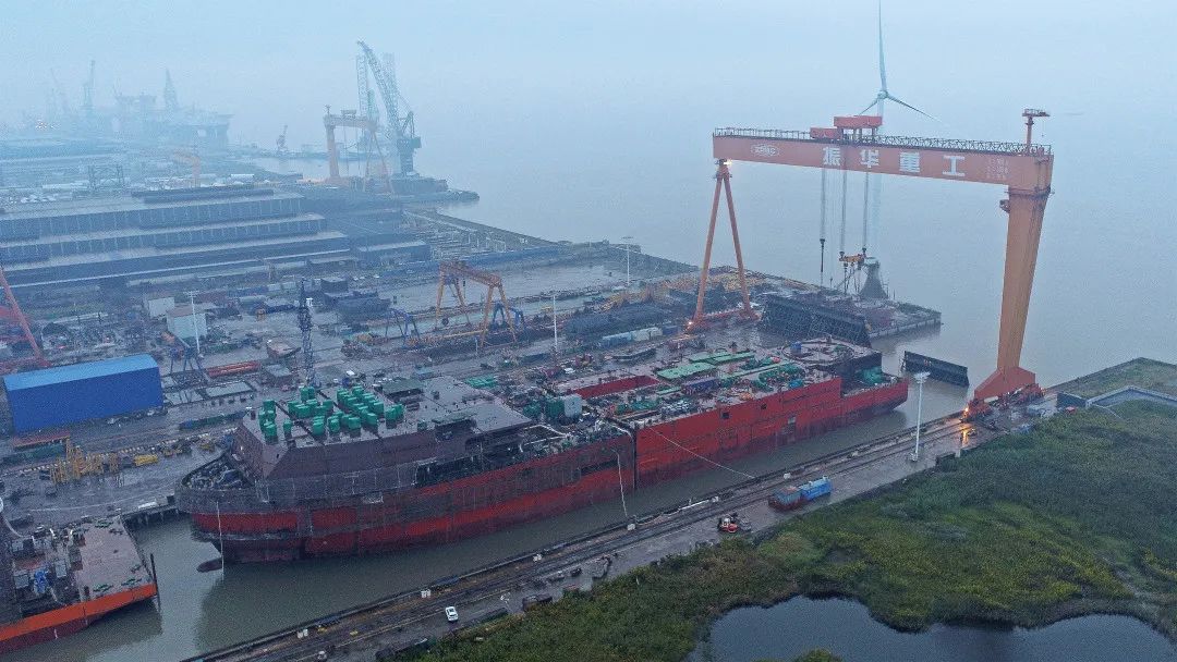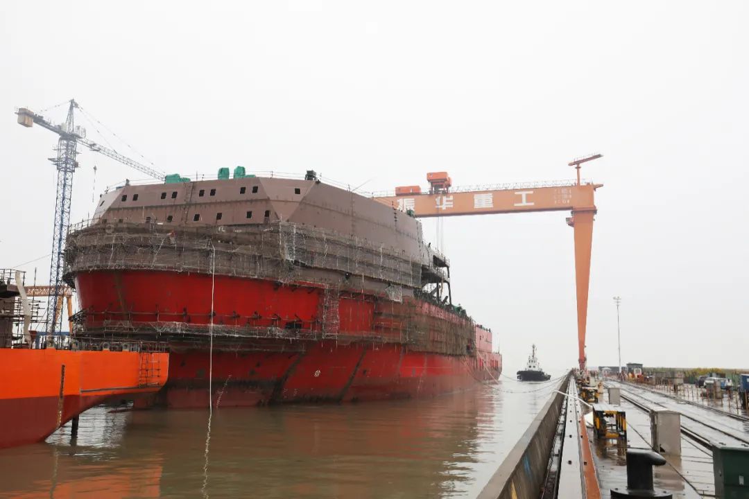 振华重工完成世界最先进深水起重铺管船进坞对接